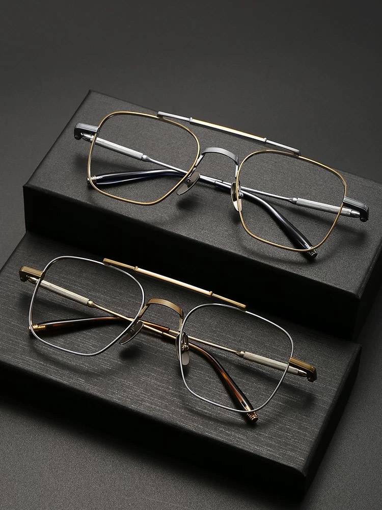 Engineered Simplicity- Ultra-lightweight, precision-cut titanium meets a bold double-bridge silhouette—designed for those who understand that true luxury is subtle.